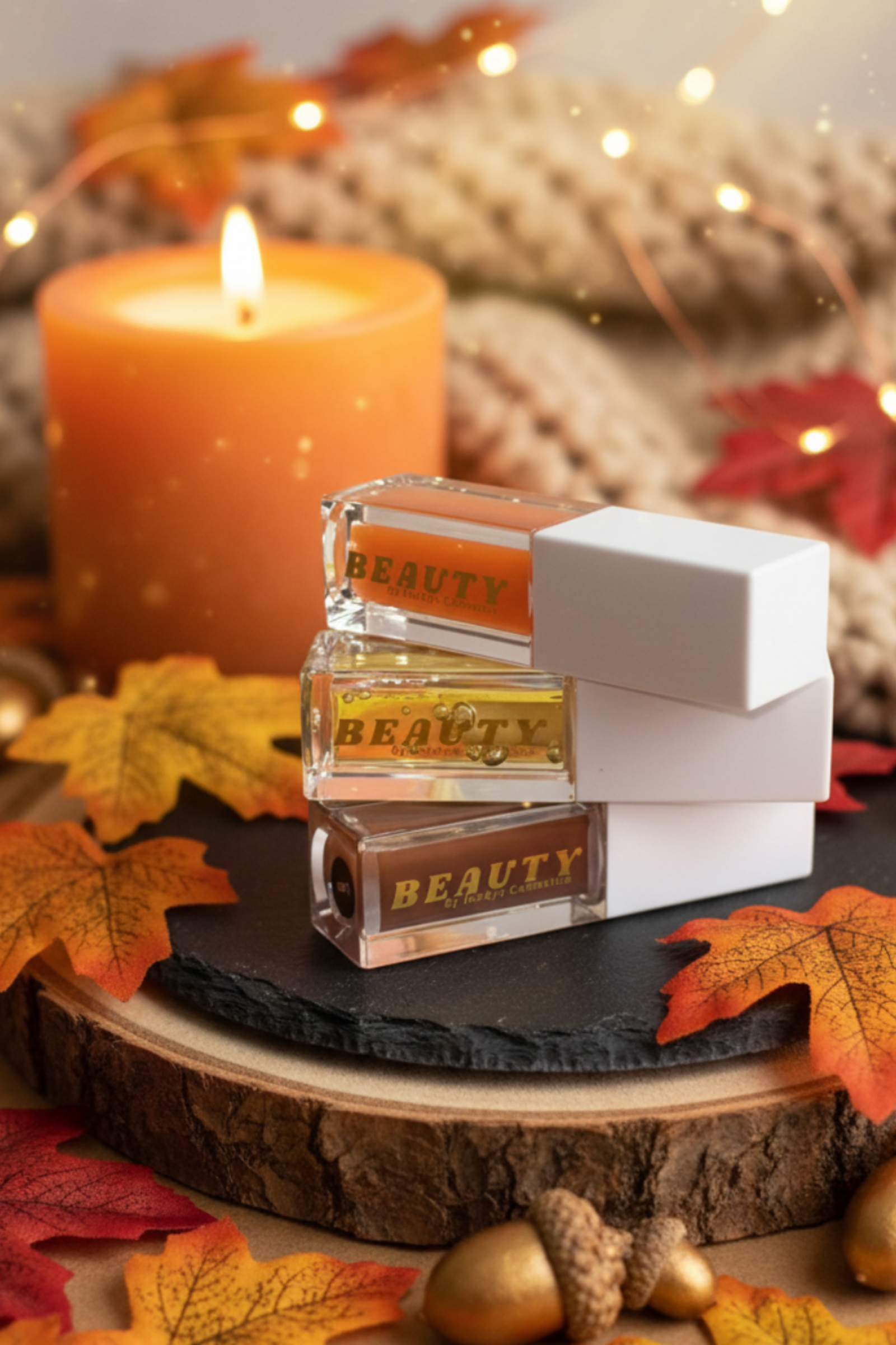 Fall in love with your glow all over again. Our Harvest Glow Trio brings you three hydrating lip oils crafted to nourish, comfort, and shine through the season. Inspired by the warmth of fall gatherings and golden sunsets, each shade wraps your lips in moisture and a glossy wash of color.